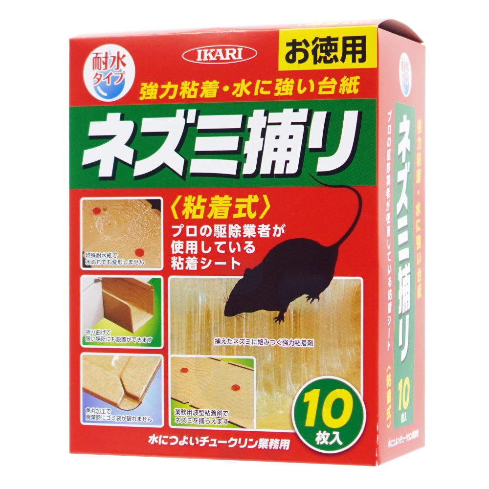 ネズミ粘着シート 水につよいチュークリン業務用 10枚入 耐水 イカリ消毒