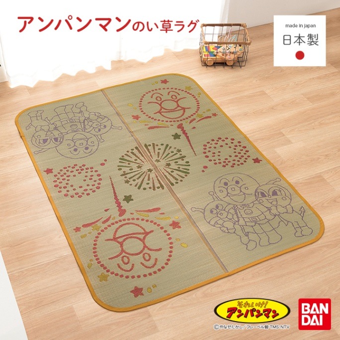 国産 い草ラグ 「アンパンマン花火大会」 約140×180cm 日本製