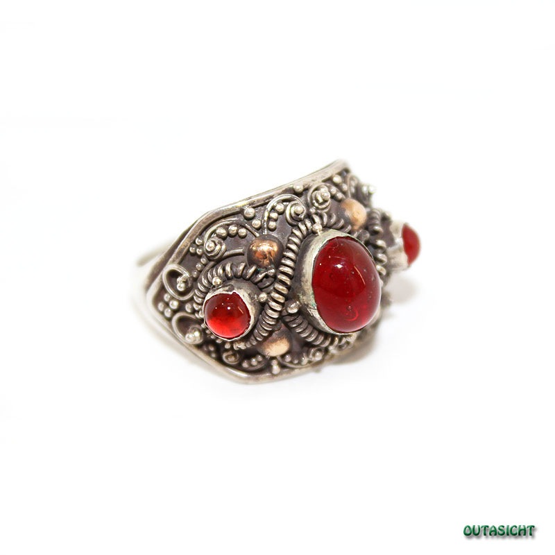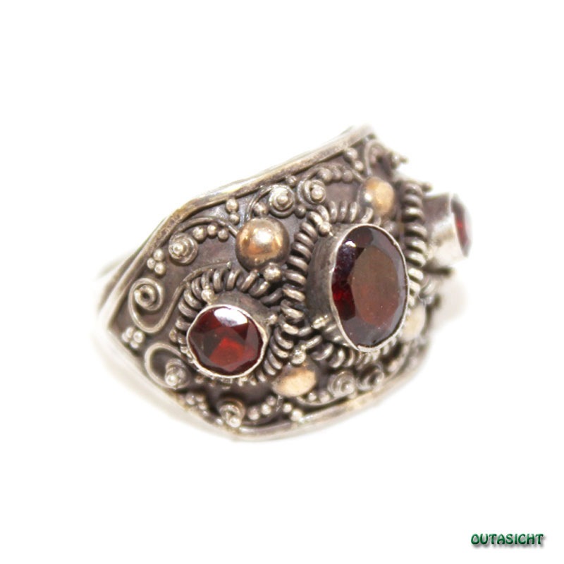 シルバーリング 天然石 ガーネット 14号 バリ島 インドネシア SRSN-02