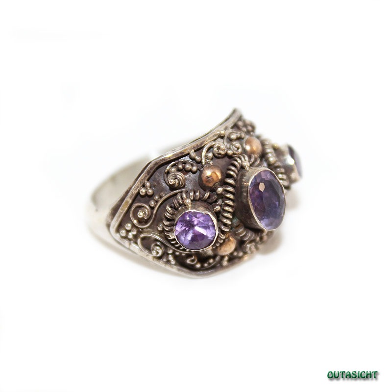 シルバーリング 天然石 アメジスト 18号 バリ島 インドネシア SRSN-04