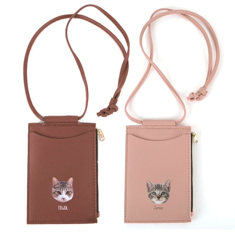 【オーダーメイド(名前入り)】 クルーク・スマホネックポーチ ブラウン・ピンク