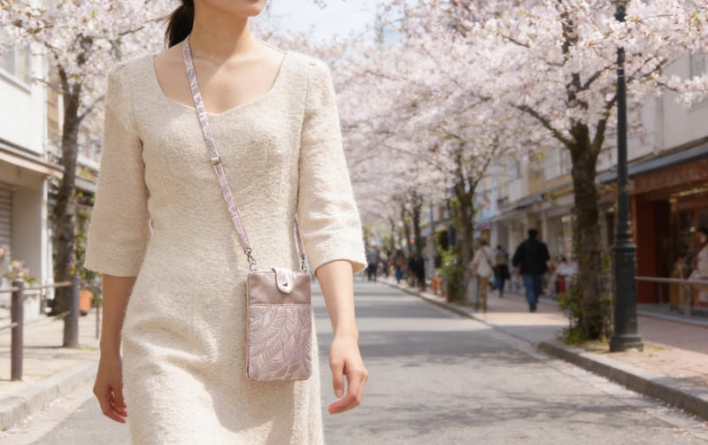 リボン刺繍 スマホポシェット 約19×13cm [Florette]