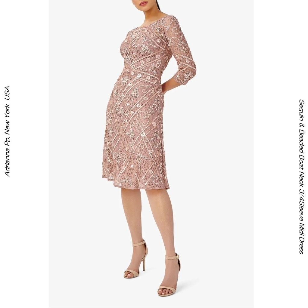 ティーレングスドレス レイシーリバーレースドレス マザーズドレス 長袖ドレス ローズ色 ROSECOLOR メタリックスパンコール...