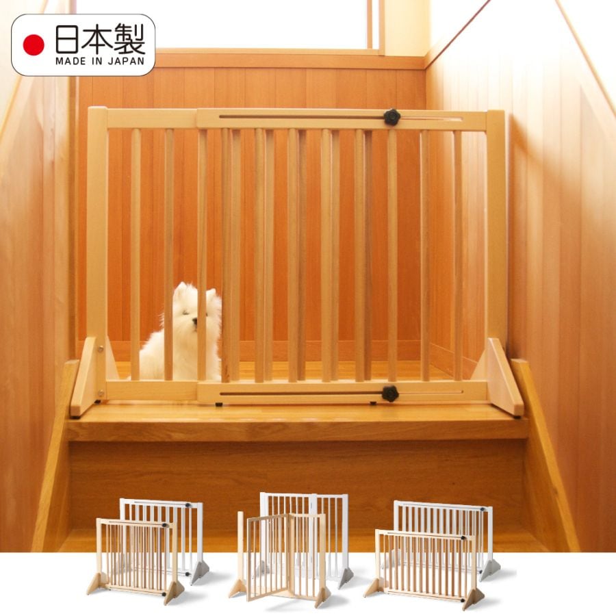 日本製 「木製ペットゲート【伸縮/ワイド/扉つき90】」 ペット バリケード 柵 ゲート フェンス 屋内 天然木 石崎家具