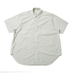 ジムフレックス GYMPHLEX 半袖 ボタンダウンシャツ オーバーサイズ ウオッシュド ストライプ ベージュ×グレー