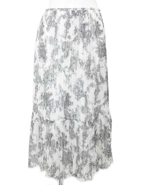 23区 白 黒 柄 プリーツ ロング スカート 38