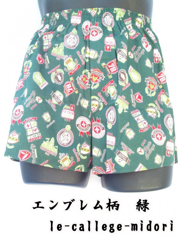 Leトランクス エンブレム柄【緑色】S~LL 日本製 綿100%