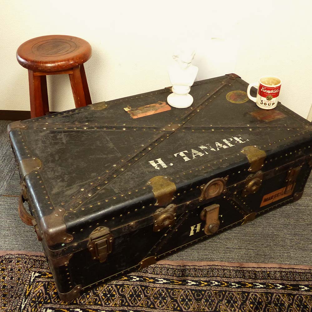 アンティーク/ ヴィンテージ 大型 木製トランク 船箱 / ローテーブル / コーヒーテーブル 【中古】【送料無料】