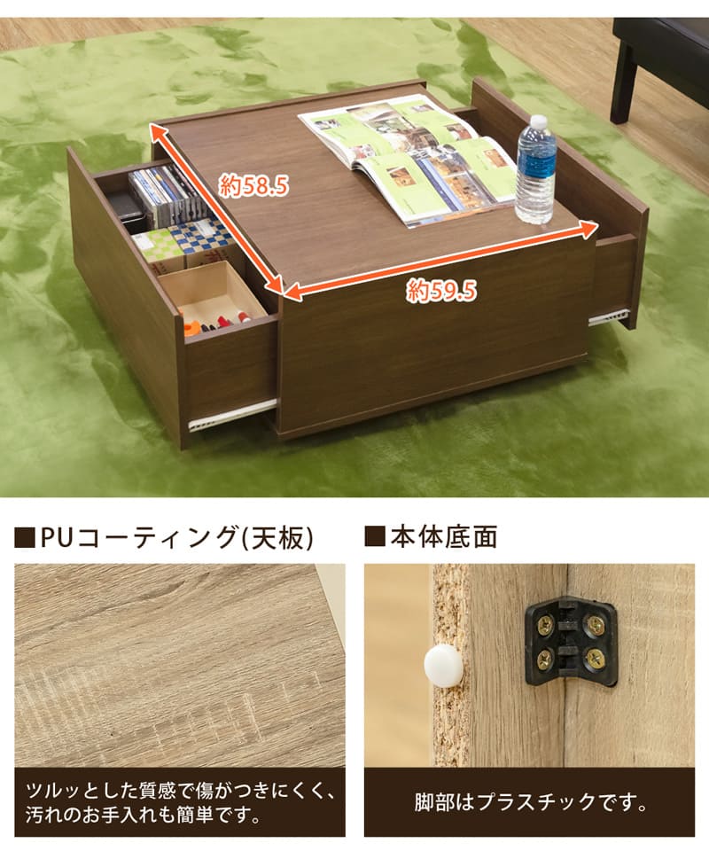 引出し付センターテーブル PND-02-WAL ウォールナット