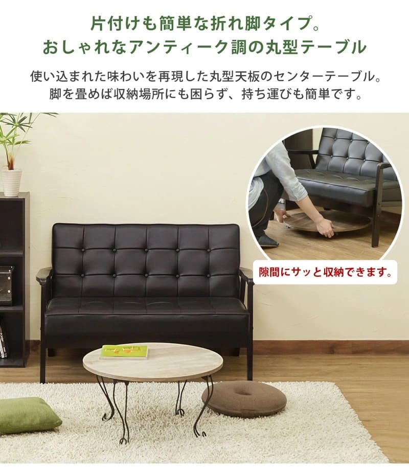 Rustic 折れ脚テーブル 丸型 THS-30-ABR アンティークブラウン