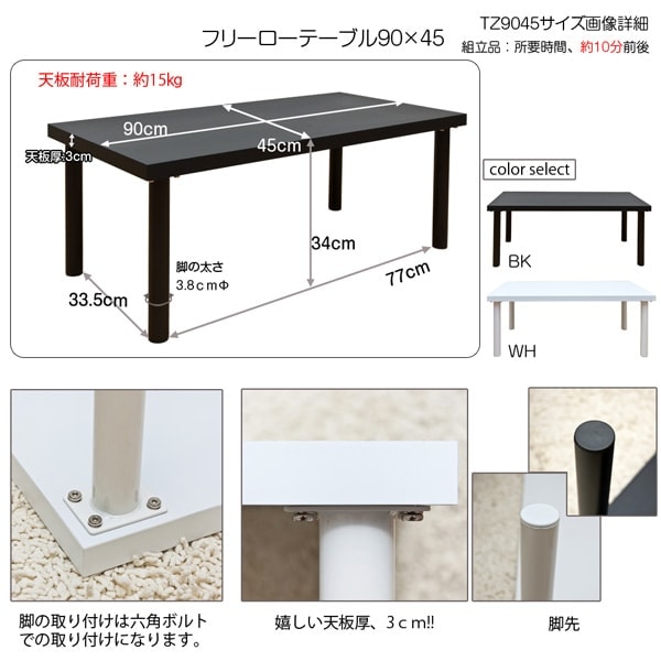 フリーローテーブル 90cm幅 奥行き45cm TZ-9045