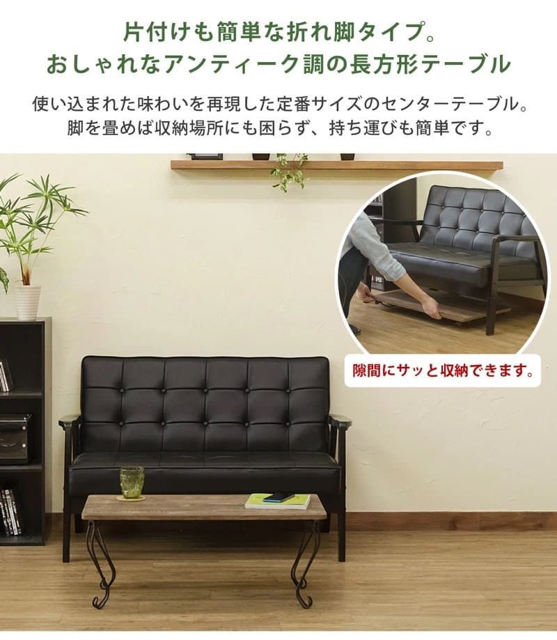 Rustic 折れ脚テーブル 角型 THS-31-ABR アンティークブラウン