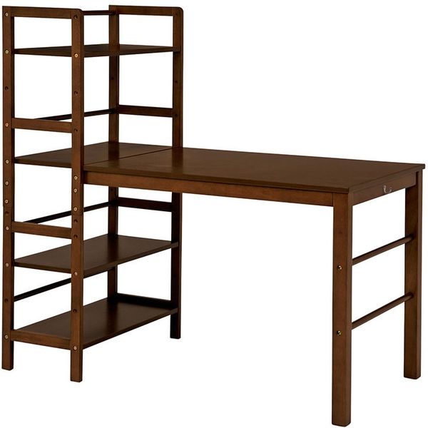 【未使用】書棚付きデスク 省スペース ユニットデスク 幅120奥行62高さ120cm(VD-7376) (ダークブラウン)