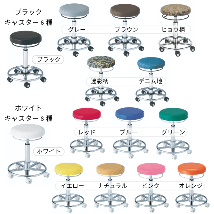 スターカッティングチェア キャスター2種全14色 サロンスツール 丸イス 組立済 日本製