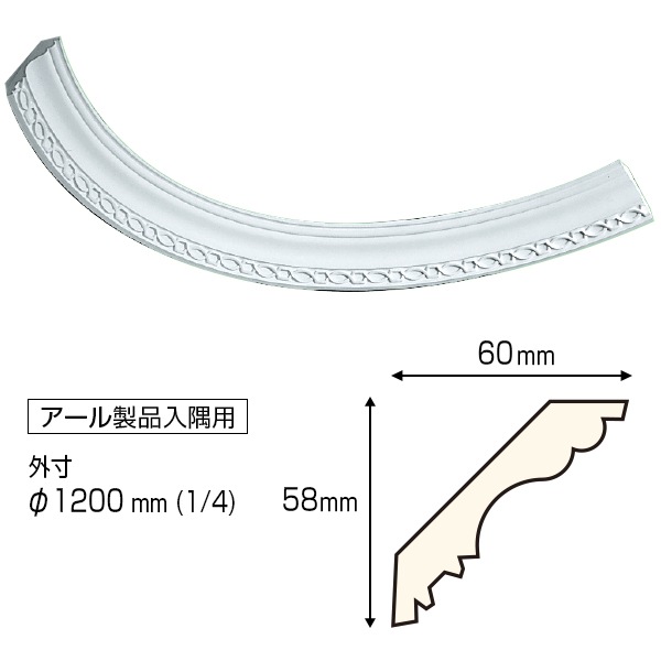 69%割引アウトレット N-5138-60E|天井装飾材フレキシブルレール円形出隅用 軽いポリウレタン製 1/4円形 ※在庫限り