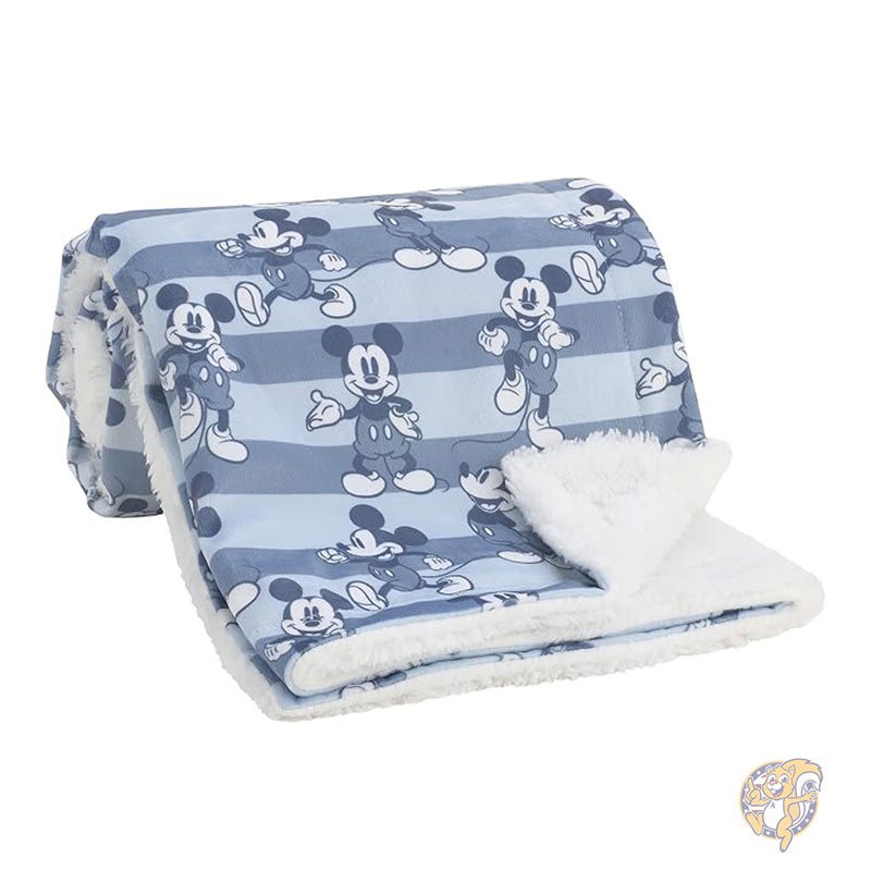 ディズニー Disney ミッキーマウス ベビーブランケット 毛布 ブルー ホワイト ストライプ スーパーソフト ベルボア シェル...