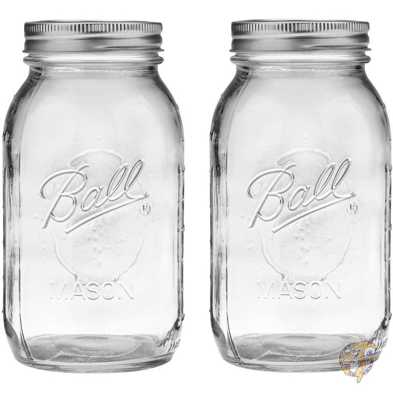 メイソンジャー レギュラーマウス 32オンス 907g 蓋とバンド付き クリア (2個パック) ボール Ball
