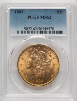 【動画あり】アンティークコイン アメリカ 20ドル金貨 リバティヘッド1893 $20 PCGS-MS62