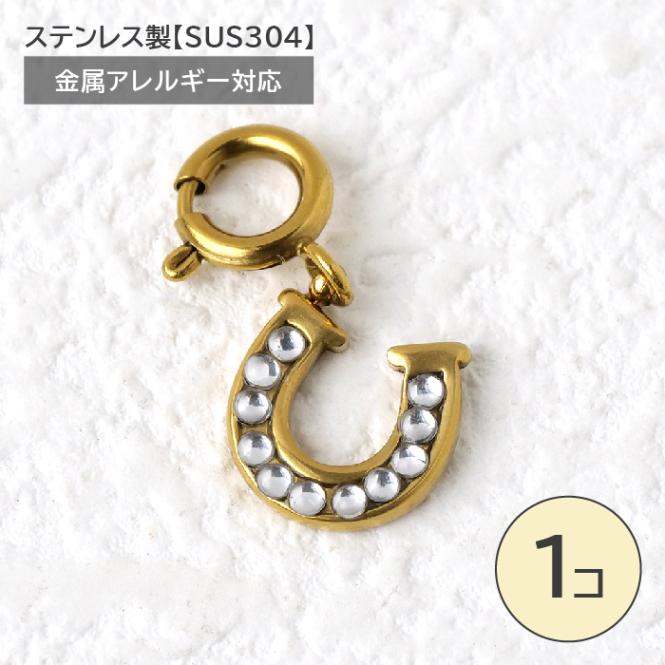 ステンレス製 チャーム 馬蹄 ホースシュー ジルコニア ゴールド ペンダントトップ 金属アレルギー対応