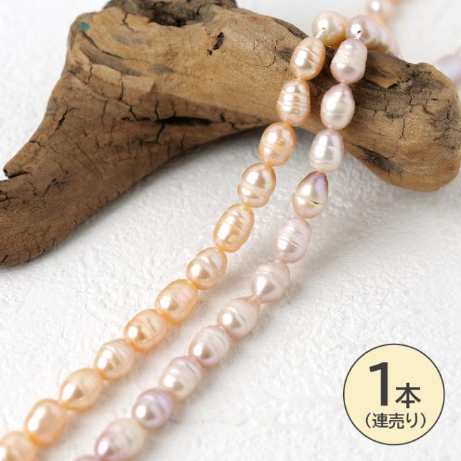 【187. 淡水パール ビーズ ライス 約7~8mm】 1連 売り 国内発送 淡水真珠 高品質
