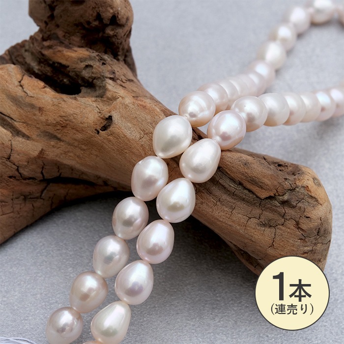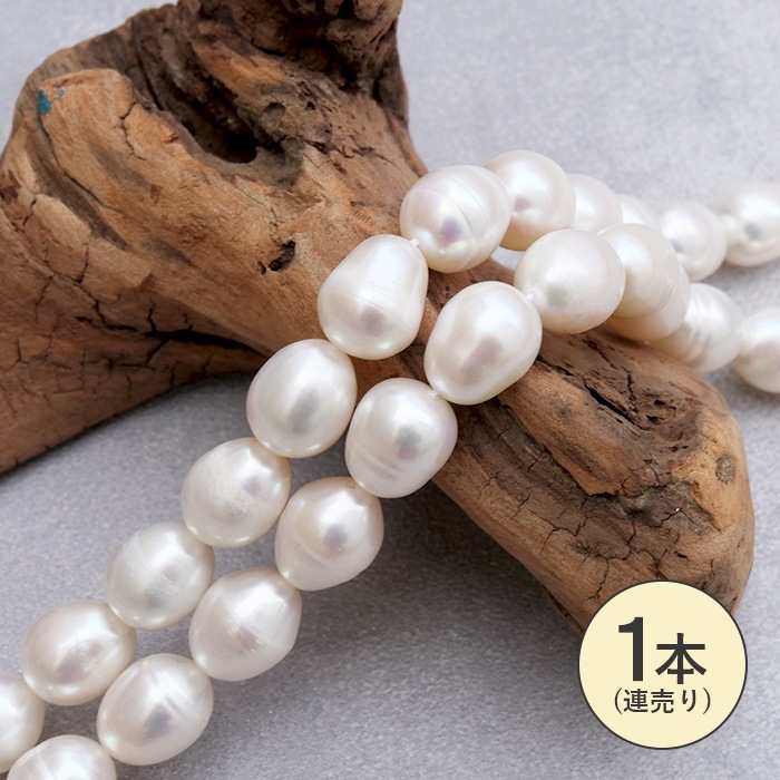 淡水パール 【ライス型 楕円型 縦10mm×横12mm ホワイト】 一連