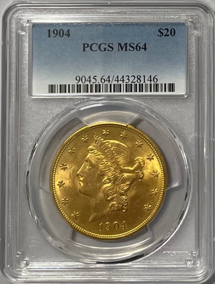 【資産防衛】アンティークコイン アメリカ 20ドル金貨 リバティヘッド1904 $20 PCGS-MS64