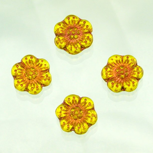 チェコビーズ プラムビーズ アンバー・コパー 14mm 4個 花 フラワー 梅 ハンドメイド 手芸 材料 ピアス ネックレス チェ...