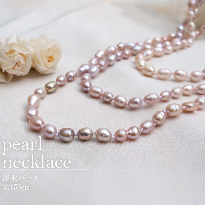 淡水パール ネックレス 【約150cm】【ライス型/ミックス/6月誕生石】