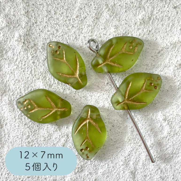 チェコビーズ リーフ 12×7mm 5個 オリーブマットゴールド マット アクセサリー ハンドメイド パーツ 葉っぱ 葉 ガラス ...
