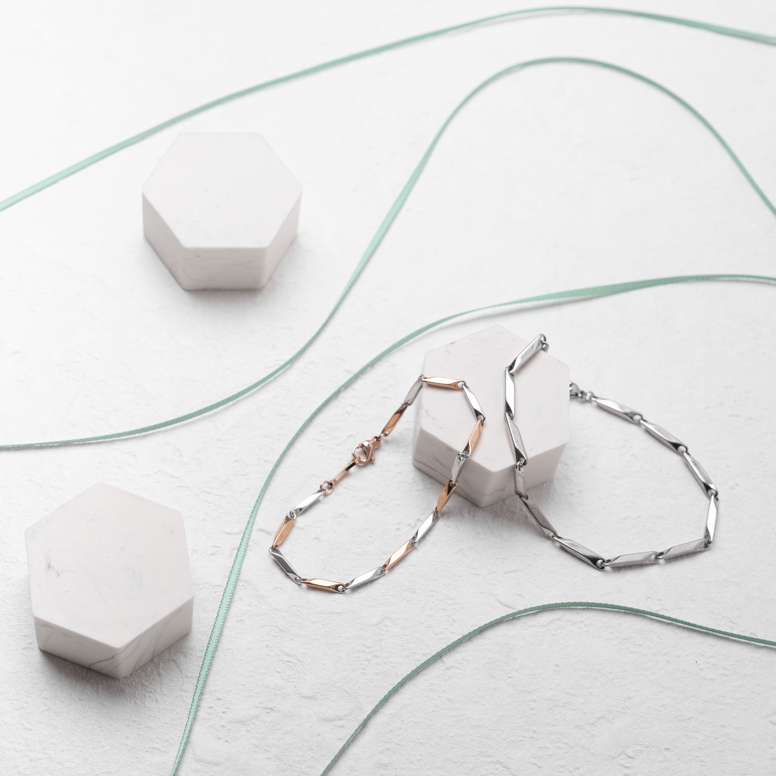 4面カットのコネクテッド・バー・チェーン ペアブレスレット/ペアアンクレット サージカルステンレス アレルギー対応 つけっぱなしo...