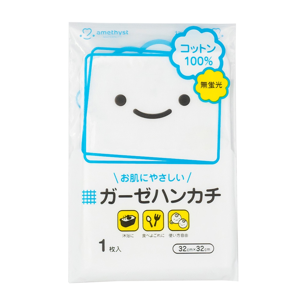 アメジストベビーガーゼハンカチ1枚入 赤ちゃん 薄手 コットン100% 肌に優しい 無蛍光 買い置き 入院準備 出産準備