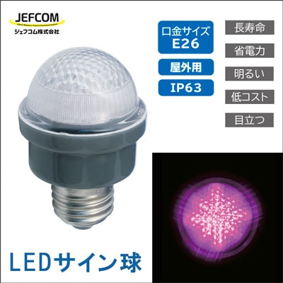 PC12W-E26-P || 屋外用LEDサイン球 ジェフコム 【ピンク色】 E26口金 保護等級(IP63/口金部除く) AC1...