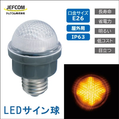 PC12W-E26-Y || 屋外用LEDサイン球 ジェフコム 【黄色】 E26口金 保護等級(IP63/口金部除く) AC100...