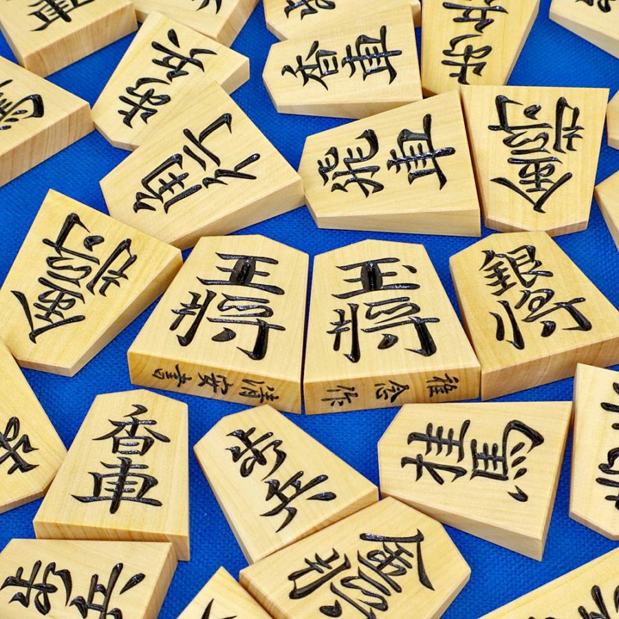 将棋駒 稚念作 御蔵島産本黄楊材 彫駒 錦旗書 面取り加工 ※桐平箱付