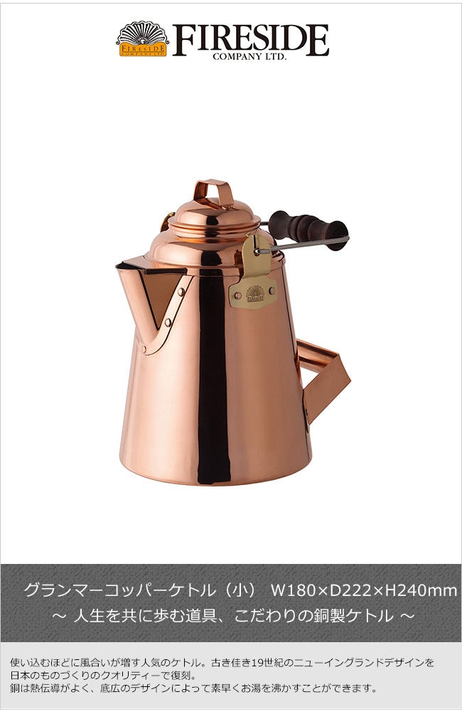 グランマーコッパーケトル小/(ファイヤーサイド社)【アウトドアライフ 銅製ケトル ストーブトップ キャンプ アウトドア 調理道具 ...