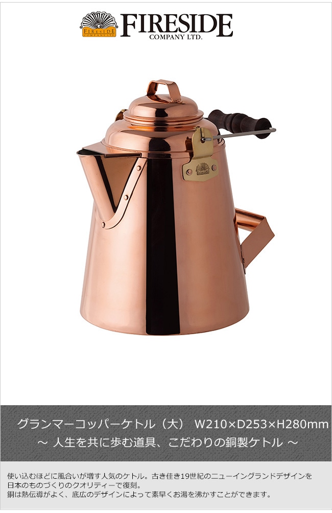 グランマーコッパーケトル大/(ファイヤーサイド社)【アウトドアライフ 銅製ケトル ストーブトップ キャンプ アウトドア 調理道具 ...
