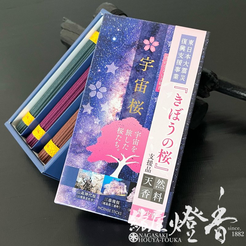 お線香『復興支援事業・きぼうの桜【宇宙桜~三種のサクラの香り~】短寸バラ詰[少煙/天然香料]梅薫堂