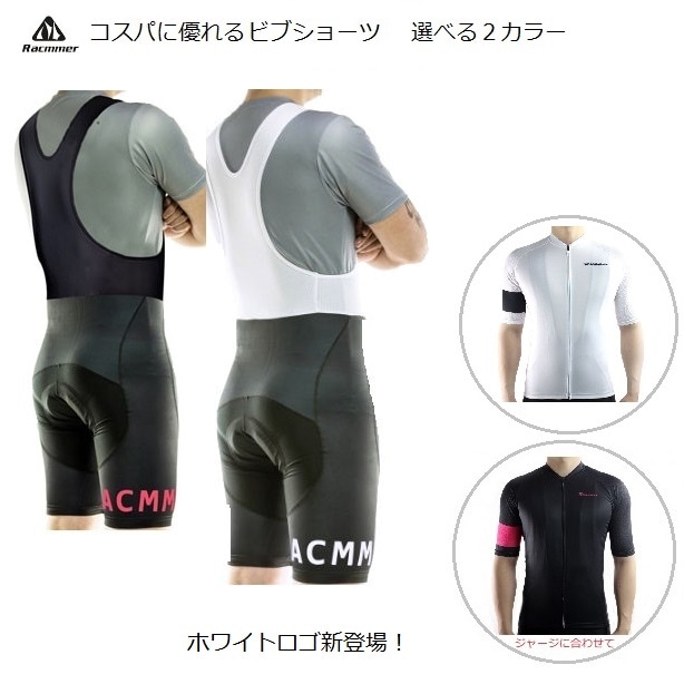 【送料無料】サイクルウエア Racmmerのコスパに優れるビブショーツ ジャージとおそろい ホワイト新登場