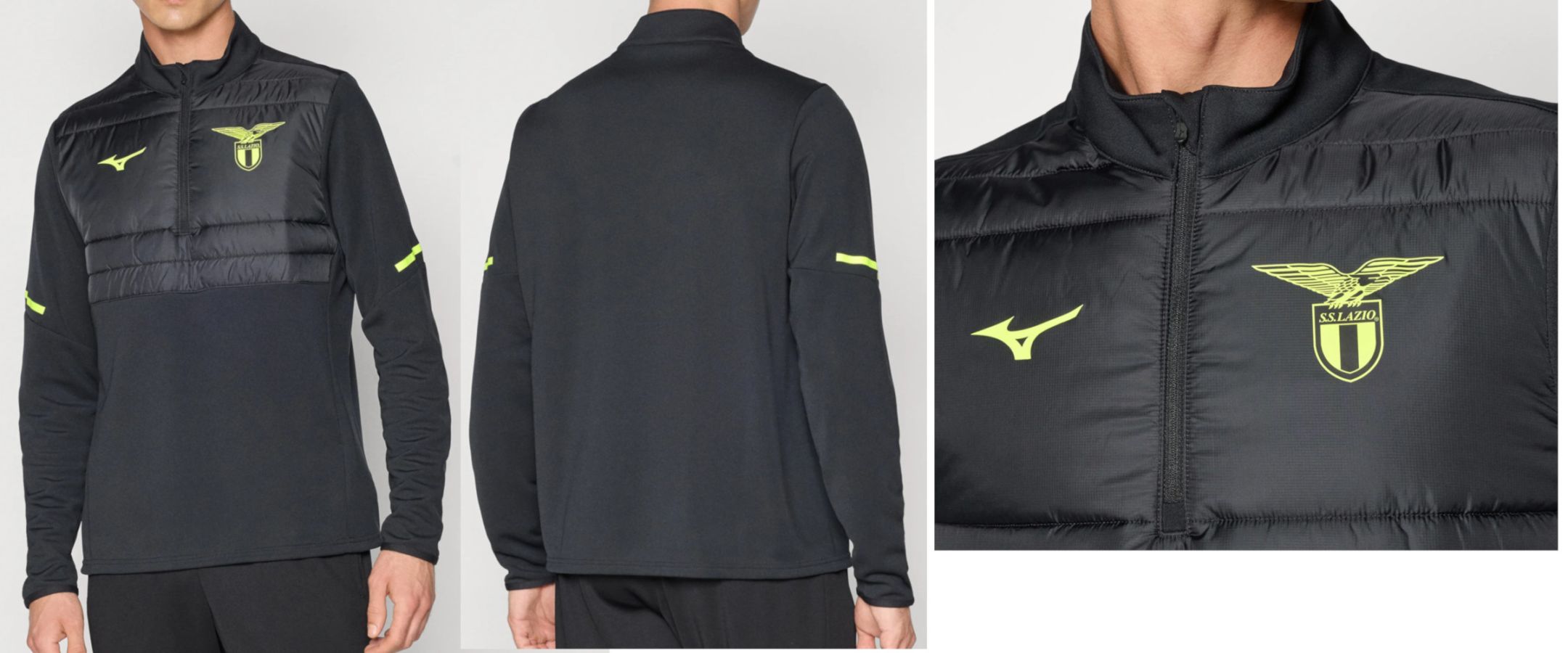 世界市場独占!25/26 ラツィオ・オフィシャル\"ハイブリッド\"ハーフジップミッドレイヤートップ:ブラックカラー(スペインから...