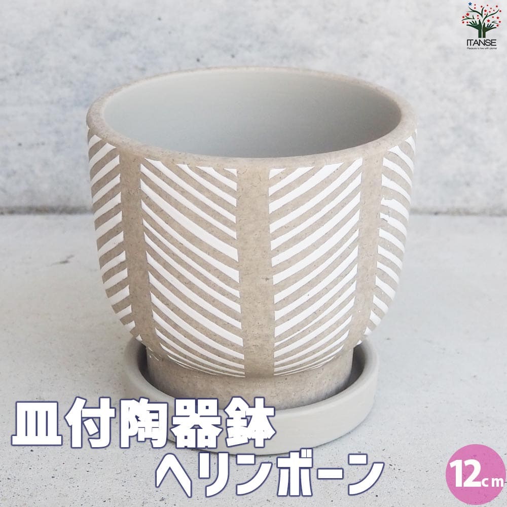 皿付陶器鉢 ヘリンボーン【資材 12cm】