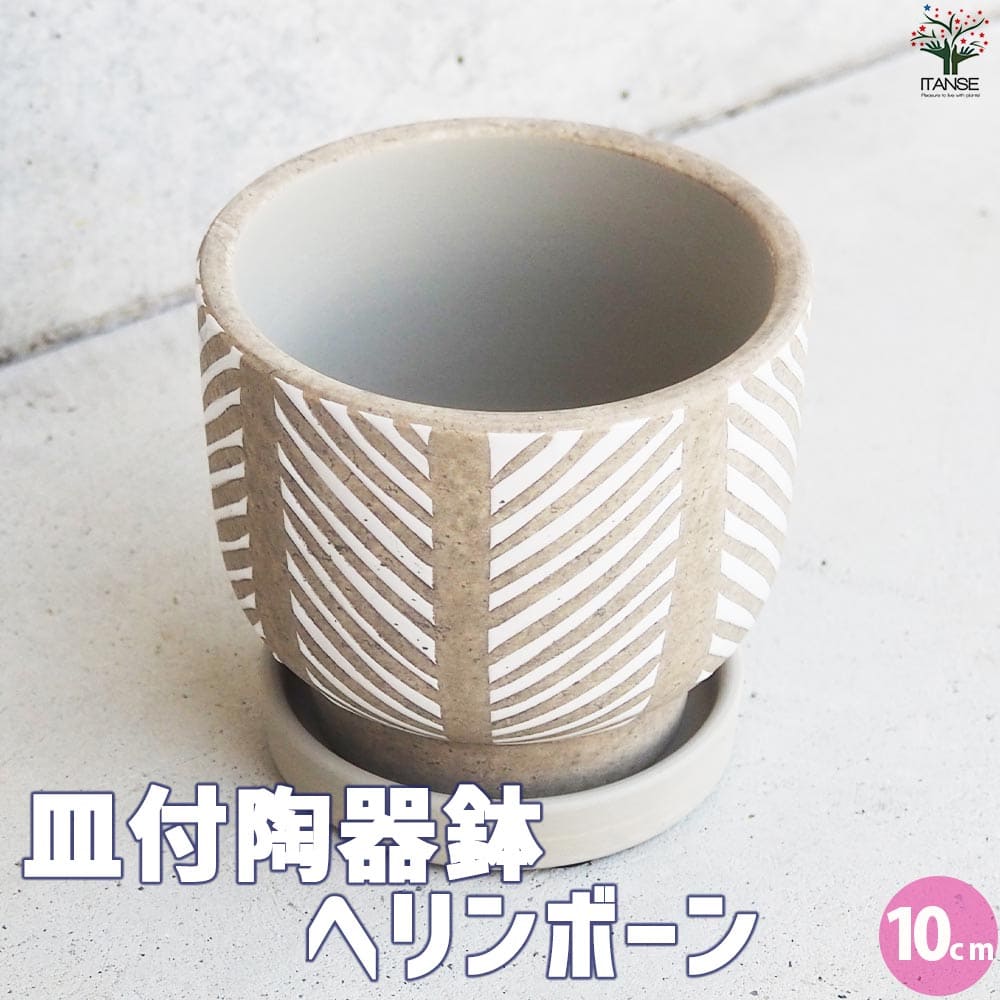 皿付陶器鉢 ヘリンボーン【資材 10cm】