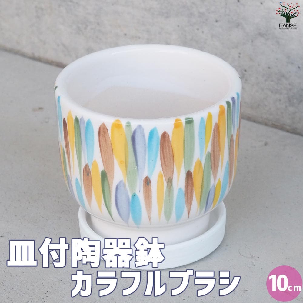 皿付陶器鉢 カラフルブラシ【資材 10cm】