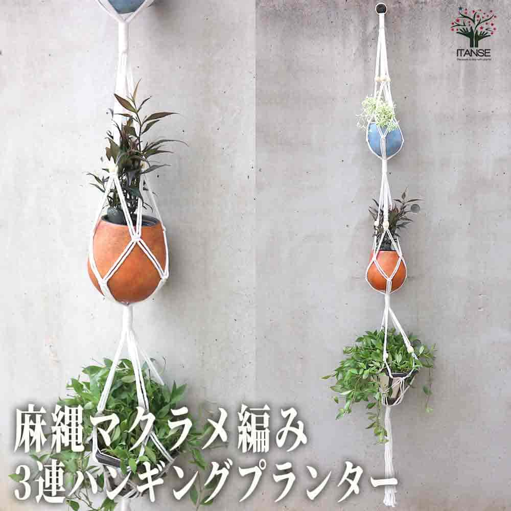 麻縄マクラメ編み 18番 3連ハンギングプランター 【ハンギング資材 】