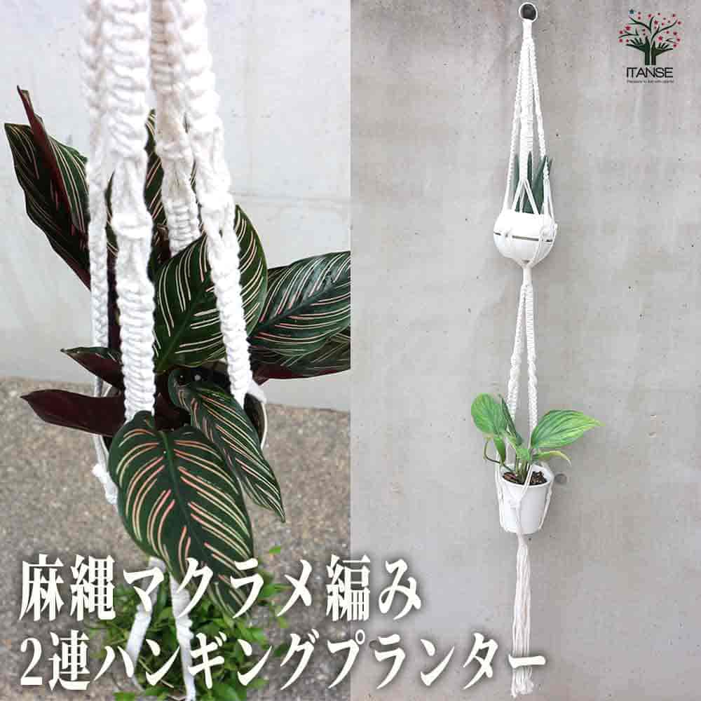 麻縄マクラメ編み 16番 2連ハンギングプランター 【ハンギング資材 】