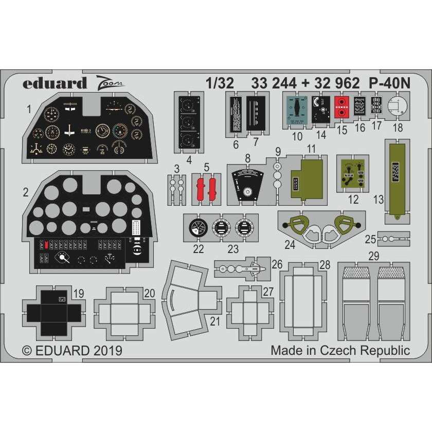 32962 塗装済 カーチス P-40N ウォーホーク 内装エッチングパーツ (トランペッター用)