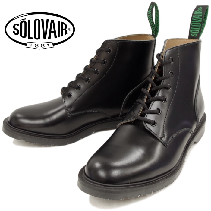 【SALE:20%OFF】 ソロヴェアー SOLOVAIR 474 6 EYE DERBY BOOT ブラック プレーン ブーツ ...