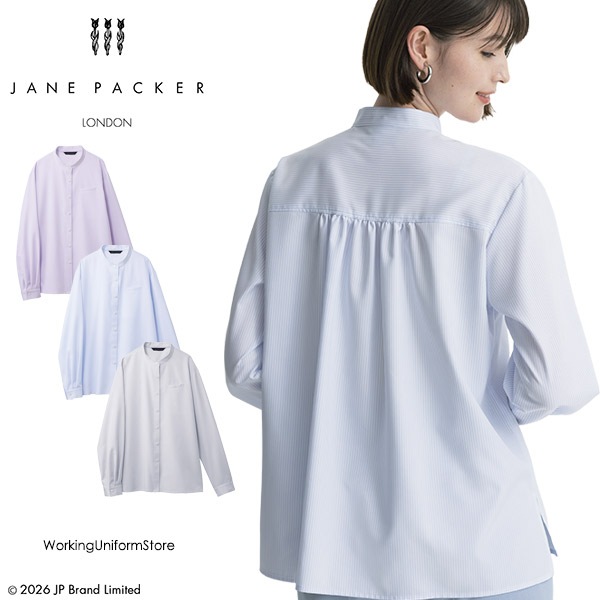 事務服 ジェーンパッカー 長袖ブラウス S-73262/6/9 リリーストライプ セロリー仕事服