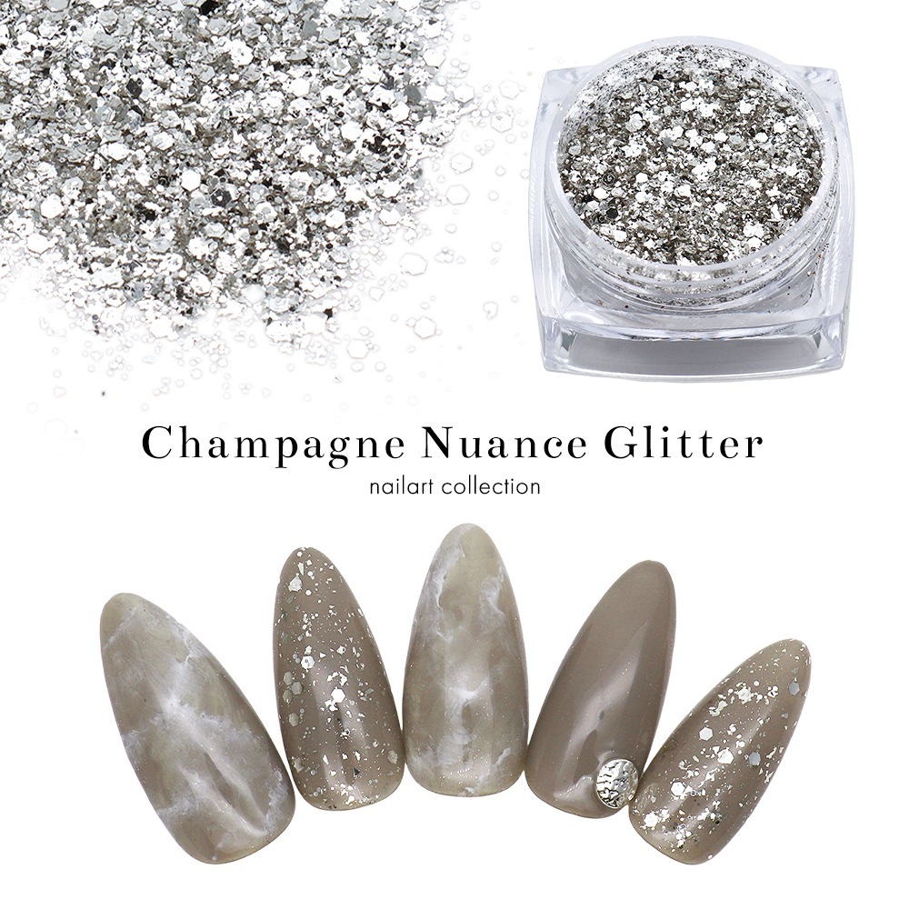 【ネコポス送料無料】ネイルアート シャンパンニュアンスグリッター 約1g入り ケース入り