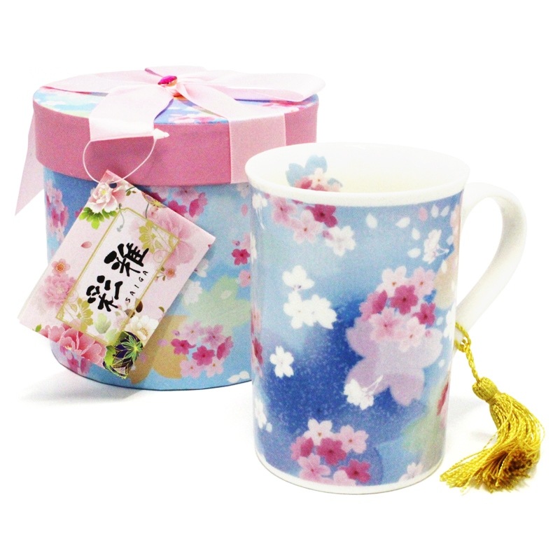 彩雅 マグカップ 金のふさ付き ギフトボックス入り (小花)