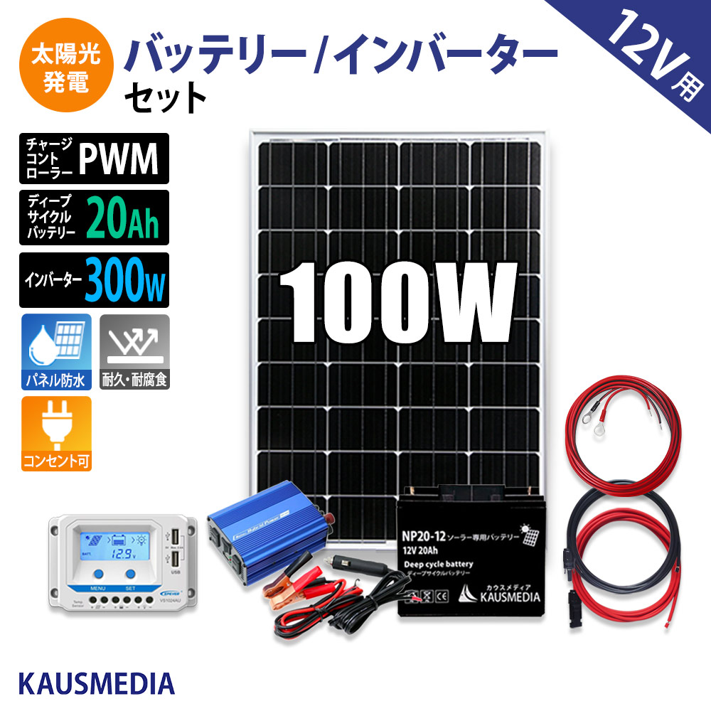 100W ソーラー充電 20Ah バッテリー 300W インバータ セット ソーラー発電 蓄電池 非常用 AC100V 家庭用電源